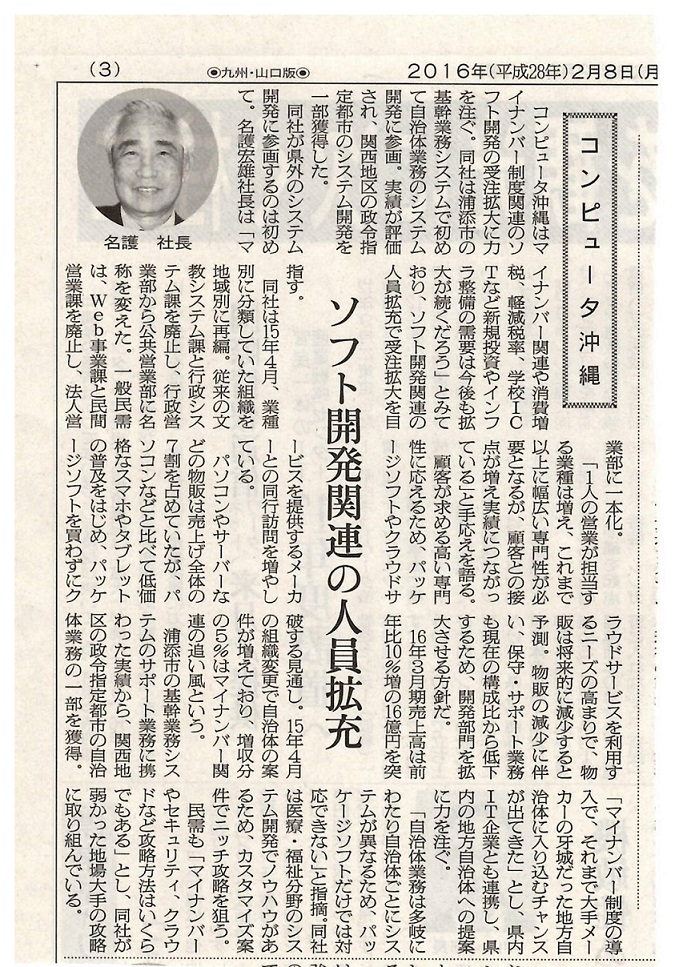 ソフト開発関連の人員拡充 (2016年2月8日 電波新聞掲載)
