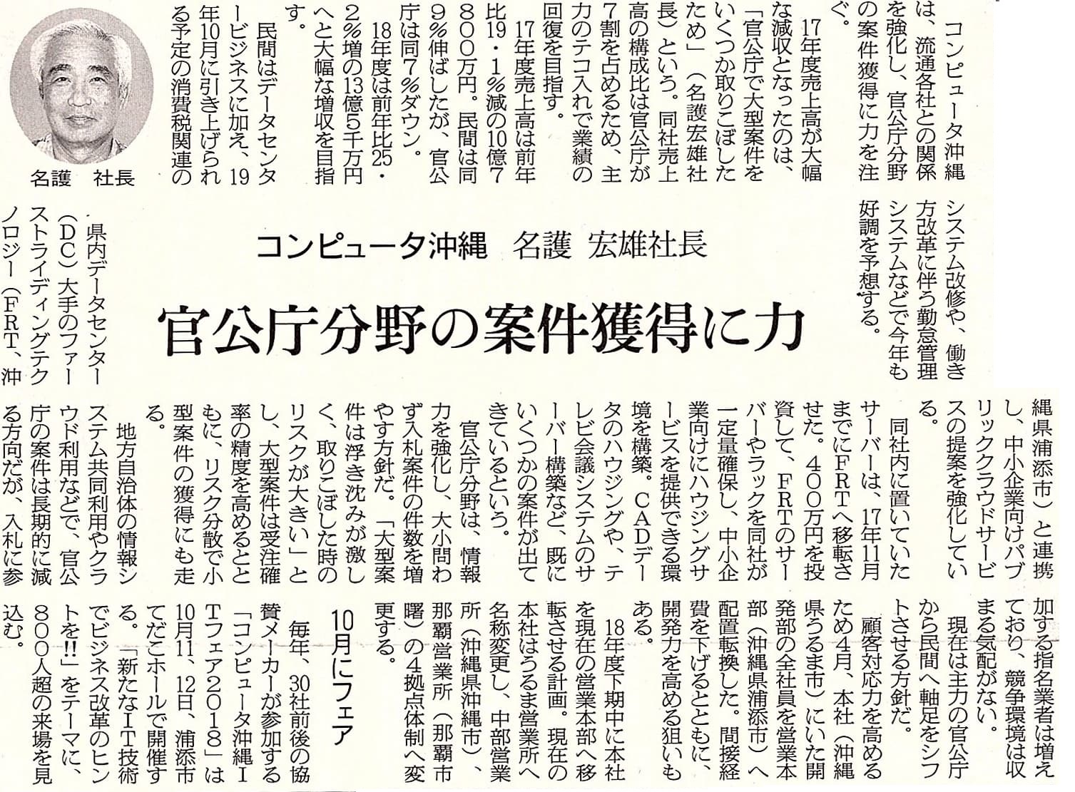 官公庁分野の案件獲得に力(2018年3月 電波新聞掲載)