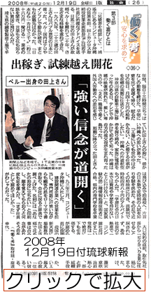 ■弊社 取締役営業企画部長 田上カルロスが 琉球新報 - 「働く考 安心を求めて」(12月19日付)にインタビュー記事として掲載されました。